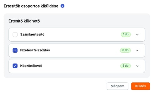 Amennyiben normál számlaértesítőt már küldtél a számlával kapcsolatban, akkor a csoportos értesítő küldésnél fizetési felszólítást küldünk.