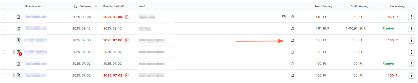 Azoknak a számláknak a sorában, melyekről küldtél már korábban értesítőt egy kis harang ikon jelenik meg.
