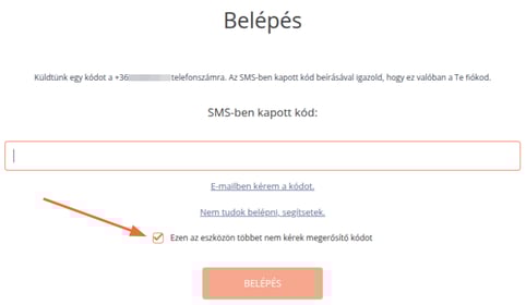 Amennyiben felhasználói profilodon a profiladatok módosításánál bekapcsolod az SMS-kód belépéskor lehetőséget, minden új eszközön történő belépéskor küldünk egy belépést megerősítő SMS-t az általad megadott működő mobilszámra.