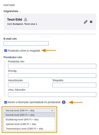 Már a számla írása közben kérheted, hogy postázzuk azt partnered részére.